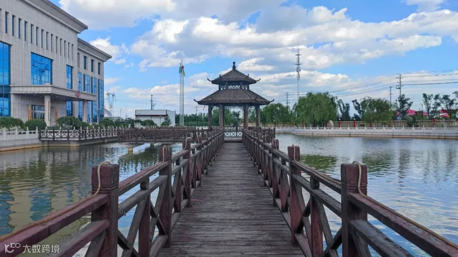 亭台楼阁,绿水环绕