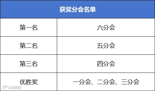 激烈的比拼之后,各分会名次尘埃落定: