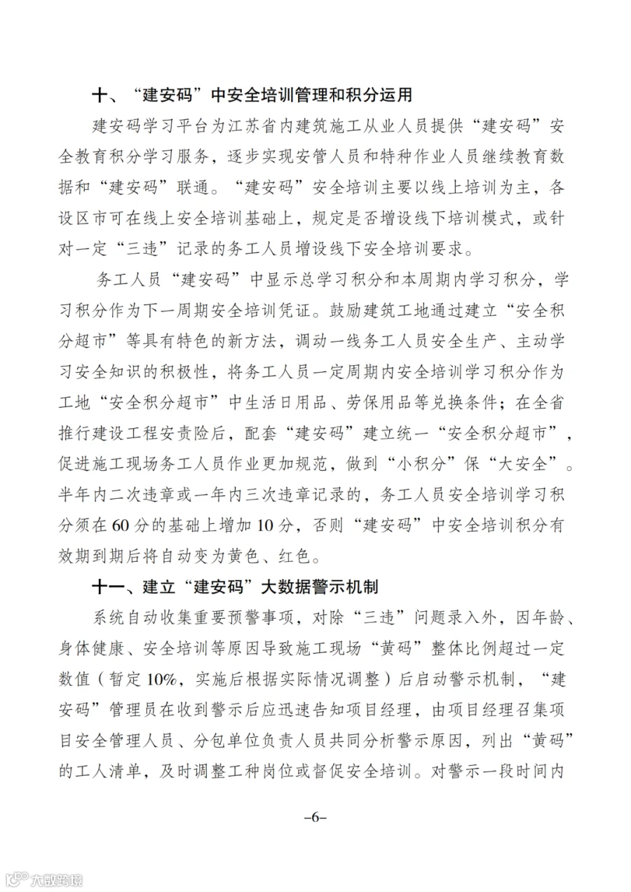 为全面提升我省建筑领域安全施工水平,进一步加强科技监管、精准施策,规范建筑施工领域从业人员安全行为,强化建筑从业人员安全生产意识,有效遏制建筑施工安全事故,切实保障建筑从业人员生命安全,在盐城市本级试点应用“建安码”基础上,就进一步推广建筑施工从业人员使用“建安码”系统试点应用范围有关事项通知如下。