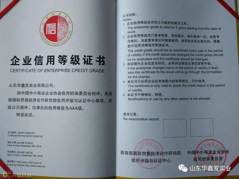导读:山东华鑫发实业有限公司: 经中国中小商业企业协会信用担保委员会初评,商务部国际贸易经济合作研究院信用评