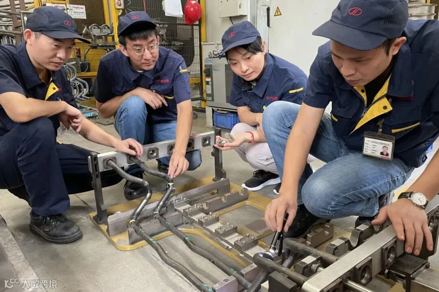 通过多款线件检具可共用底板设计、稳定杆端部打扁模架标准化设计、吹气工装共用、涂胶工装等一系列举措实现成本降低。
