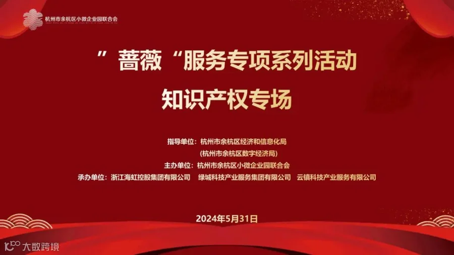 为响应国家创新驱动发展战略,推动知识产权公共服务平台的应用与发展,提升余杭区知识产权质押融资与证券化的应用水平,同时加强园区间资源共享,提升企业服务能力。2024年5月31日下午,由杭州市余杭区经济和信息化局(杭州市余杭区数字经济局)指导,杭州市余杭区小微企业园联合会主办,浙江海虹控股集团有限公司、绿城科技产业服务集团有限公司、云镇科技产业服务有限公司联合承办的“蔷薇”服务专项系列活动之知识产权专场在海虹新材料科技园一楼会议室成功举办。