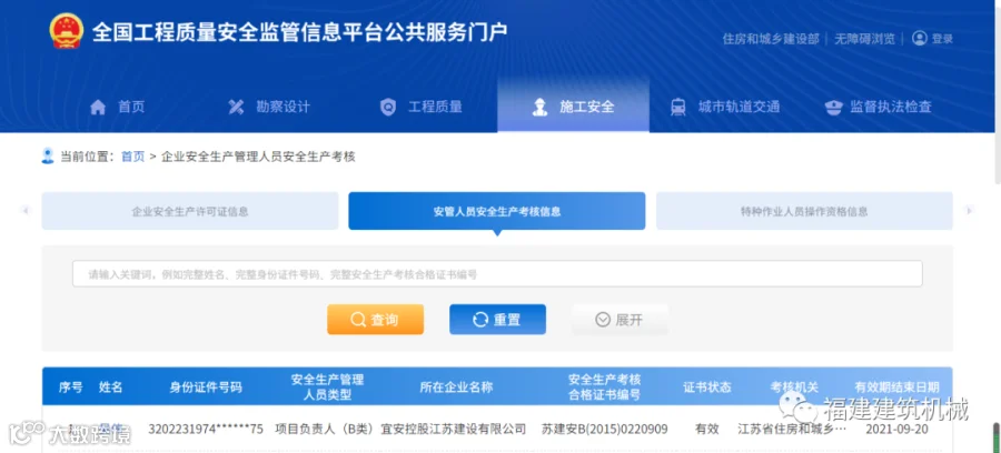 住建部即将开通全国安管人员、特种作业人员查询平台