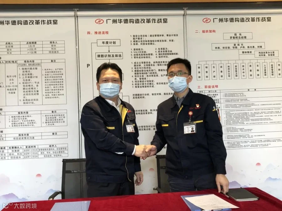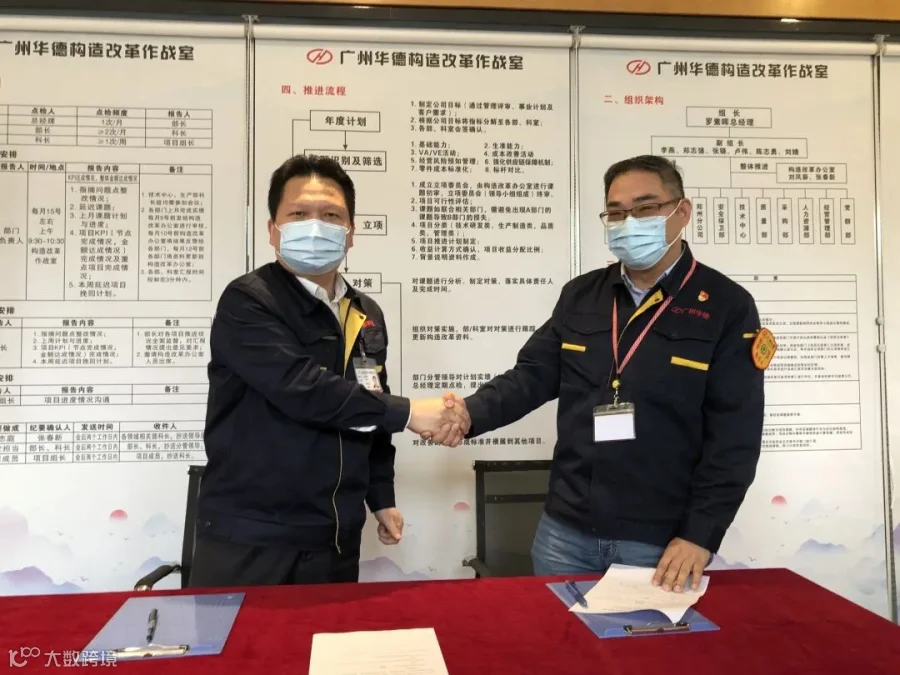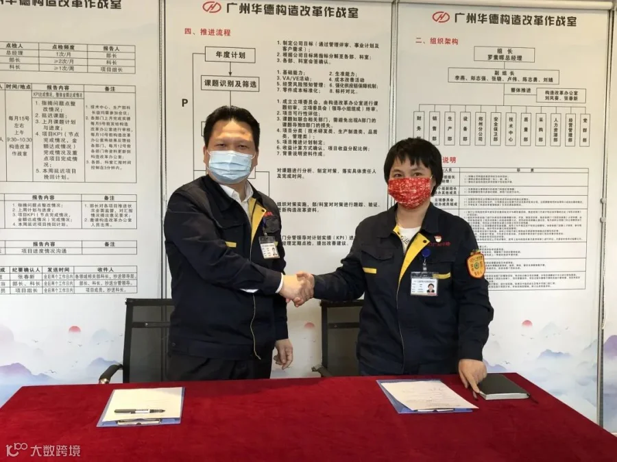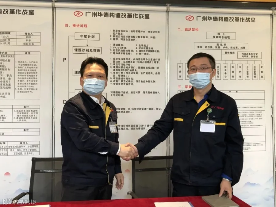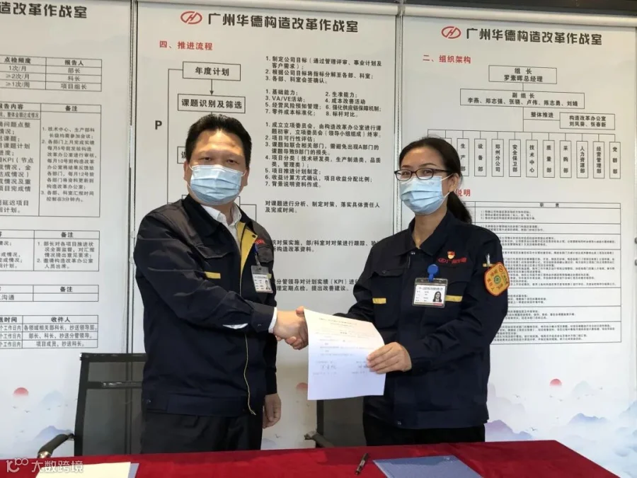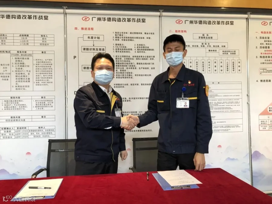 罗素晖总经理、李燕书记为广州华德构造改革作战室揭牌。