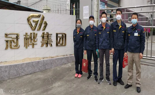 2月11日,广州华德派出李艳平、张银娥、黄远辉、罗锦超4名经验丰富的优秀员工,支援冠桦集团口罩生产线。