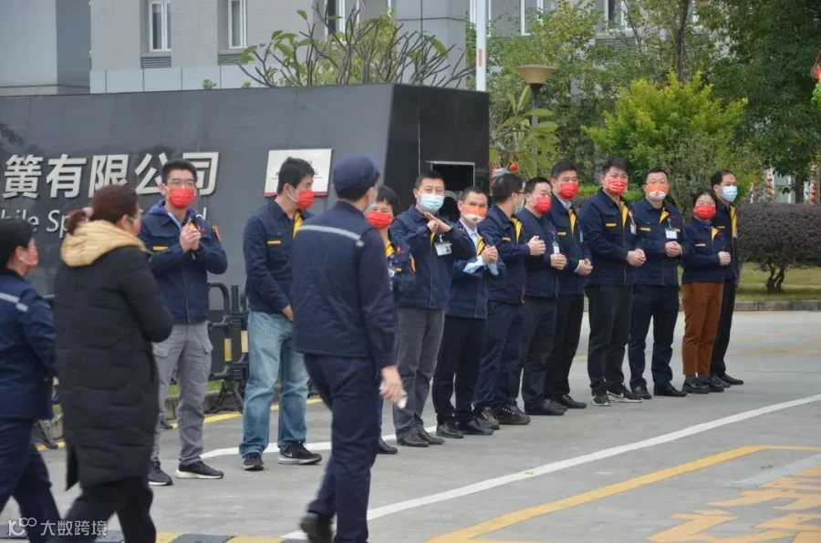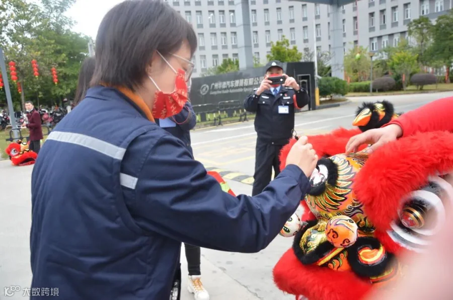 初春的早晨稍冷,公司领导及中层干部一早在公司门口,伴着狮队的锣鼓声中等候迎接上班的员工,为每一位员工送上满满的新年祝福。