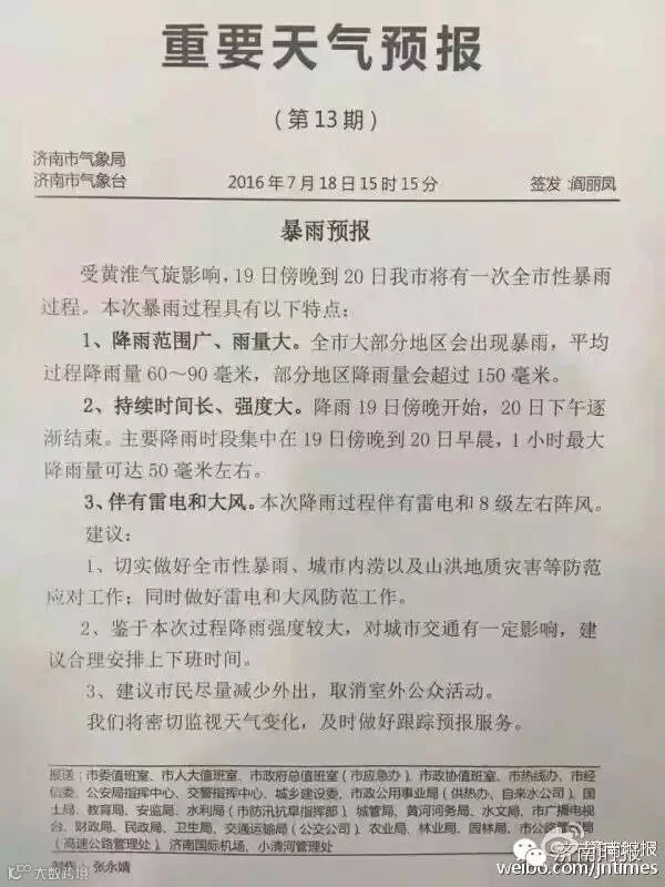 目前,济南市已进入汛期,济南市人民政府防汛抗旱指挥部办公室提醒广大市民,雨季要特别注意防范暴雨洪水灾害,主动了解掌握防汛、避险和救灾常识,提高防灾、避灾、自救、互救的意识和能力,最大限度地减少灾害损失。