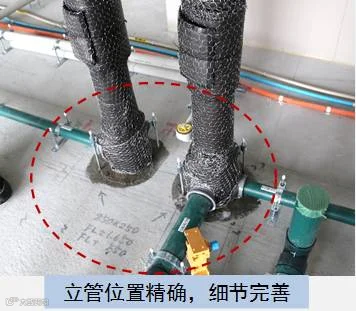 施工精细化:操作精细,考虑周全,细节完善。放线由第三方分包单位完成。放线图纸精确到毫米,采用各种颜色对不同控制线进行区分。现场放线细致,除了尺寸,还有文字说明。