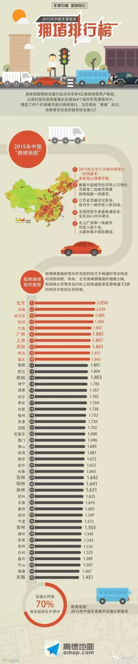 昨天下午,地图导航供应商高德发布《2015年度中国主要城市交通分析报告》,济南拥堵情况仅次于“首堵”北京,位居全国第二。