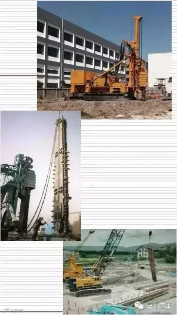 全套管成孔——适用:除用于咬合桩外,还可用于:淤泥、流砂、地下水富集等不良地层;城市建筑物密集或有地下障碍的地区。