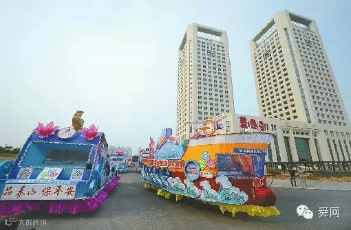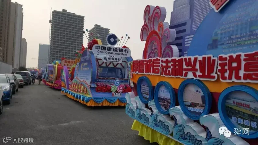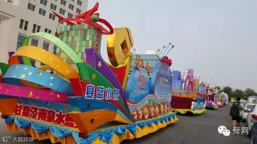 29日下午,在济南报业传媒大厦楼前广场,花车进行了试巡游。