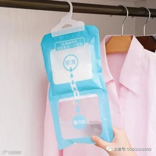 回南天,衣柜里的衣服容易受潮,导致发霉,我们可以在衣柜里放衣物吸湿袋或吸湿盒。在使用干燥剂时,须慎防盒内液体外漏污染衣物。