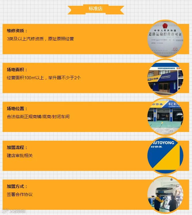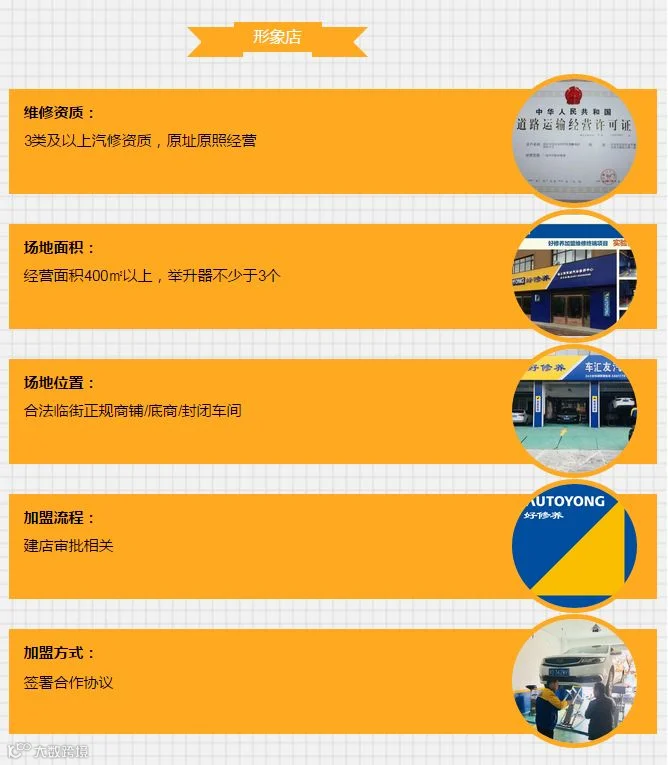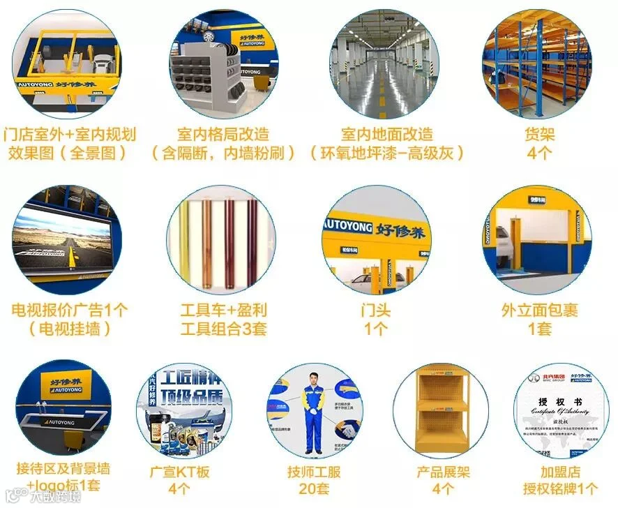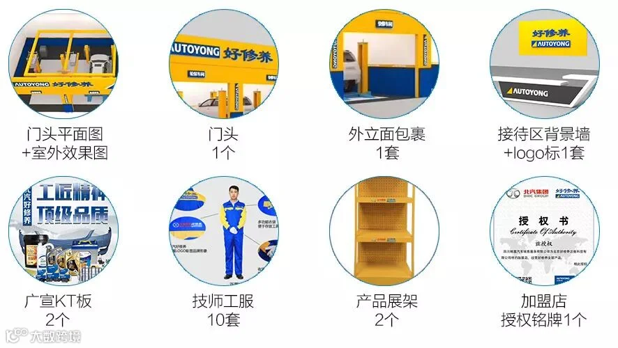 为满足广大汽修厂的加盟需求,北汽好修养提供了“标准加盟店”和“形象加盟店”两种方式,汽修厂可根据自身条件来选择加盟店面标准。