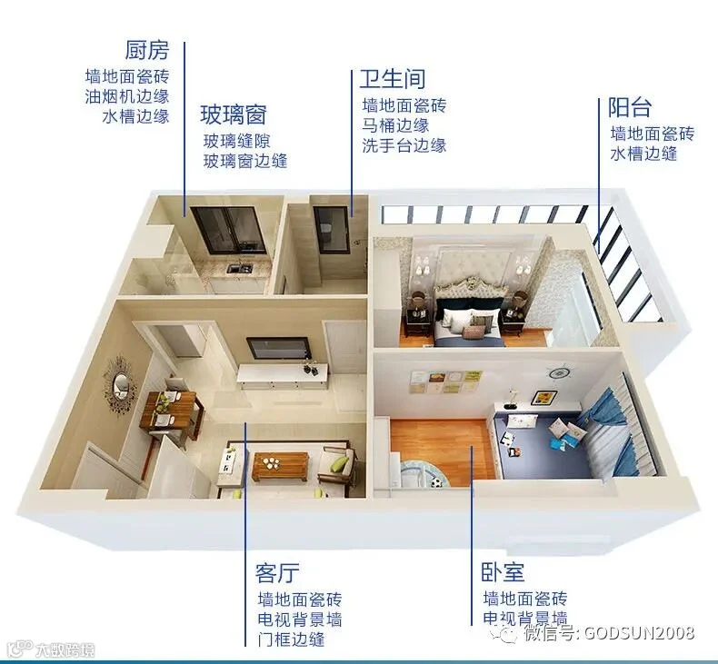 2、厨卫台面、洗菜盆、炉具、洗漱台、淋浴房、卫生间、浴缸、马桶边、窗台等边角缝隙的防霉防水美缝、装饰。