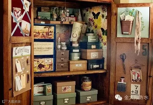 收纳也能玩复古!在复古风大热的今天,我们怎能不跟上时代的节奏,让家居收纳也玩一次复古?我们将户主的心爱之物分门别类的放进大小不一的卡其色和军绿色盒子中,再将它们以最自然的姿态摆放进散发着怀旧韵味的储物柜里,这样,一个浪漫又省钱的家居收纳方式诞生了。