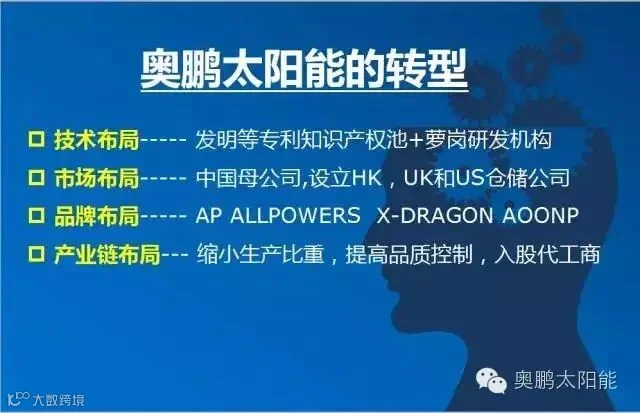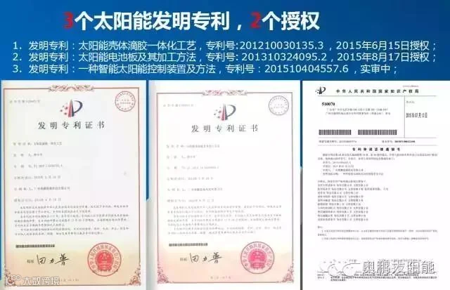 广州奥鹏能源科技有限公司是一家集太阳能便携储能装备应用设计开发、生产和销售于一体的供应商,公司的太阳能专利产品包括军用装备,工业装备和民用装备三个系列。2010年成立广州奥鹏能源有限公司作为太阳能生产和技术开发基地,在萝岗设立超过1000平米的研发中心,2012年成立了美国ALLPOWERS子公司加大市场推广工作,主要业务市场是美国,德国和日本。ALLPOWERS 品牌在美国成为继GOAL ZERO公司最重要的太阳能户外品牌。 公司拥有太阳能壳体内嵌核心技术,无缝衔接工艺技术和智能跟踪刷新技术等43项。(包括发明专利和实用新型专利)