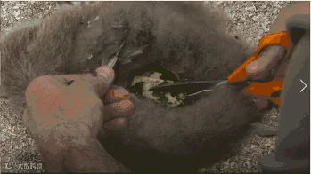 露出肚子里满满当当的塑料垃圾。