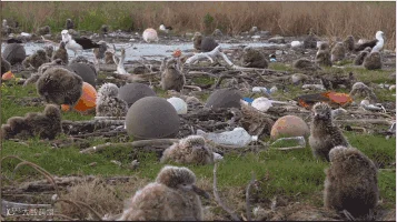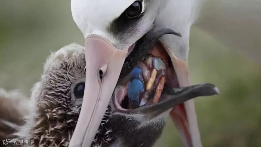 而信天翁在为嗷嗷待哺的小宝宝们觅食的时候,经常会错误地把这些塑料垃圾当成食物带回去喂给幼鸟。