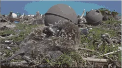 它早已死去,细碎的茸毛随着海风微微摆动。Chris 想要弄清楚它的死因。因为在这片岛上,他看到了数以万计死去的信天翁幼鸟。