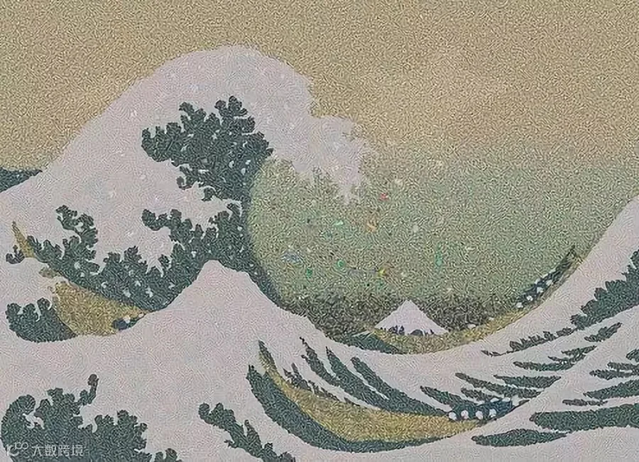 这是一幅日本最著名的画——神奈川冲浪里,只是它不是画上去的,而是由240万片从太平洋收集来的塑料碎片拼出来的。