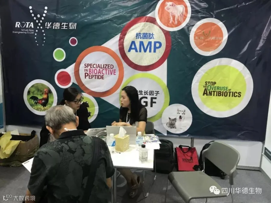 今年是我们参加亚太饲料工业展的第二年,我们带着新产品态贝康和热销产品态康利保(主要有效成分是抗菌肽)在泰国亮相。