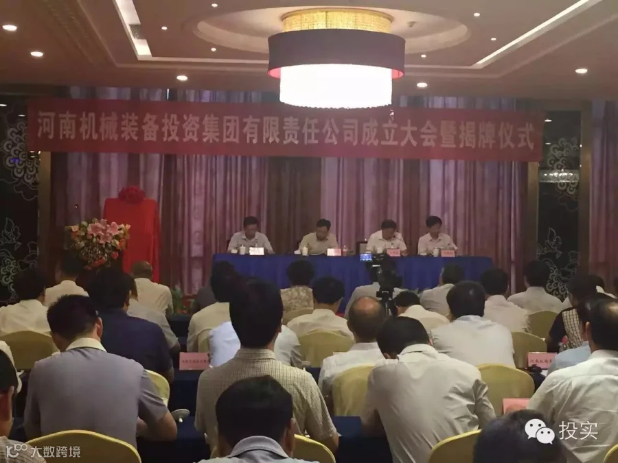 2015年8月3日,河南机械装备投资集团成立大会暨揭牌仪式在郑州举行,张维宁副省长出席会议并作重要讲话,省政府副秘书长王登喜宣布省政府《关于河南机械装备投资集团有限责任公司组建方案的批复》,省政府国资委党委书记、省委组织部副部长申振君宣读集团党委会、董事会成员任命决定。省政府国资委主任肖新明主持会议。郑州、洛阳两市政府领导,省直有关部门负责人,省管企业负责人,有关新闻单位等参加了河南机械装备投资集团成立大会暨揭牌仪式。