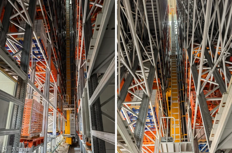 该实验中心采用的是库架一体的结构,货架直接作为建筑承重,替代了传统建筑的立柱、横梁,货架更靠近仓库边界,以实现空间利用最大化。与传统仓库相比,库架一体式设计具有更高的稳定性、更大的存储容量和更优的成本效益,尤其适合超高、超大型自动化仓储场景。