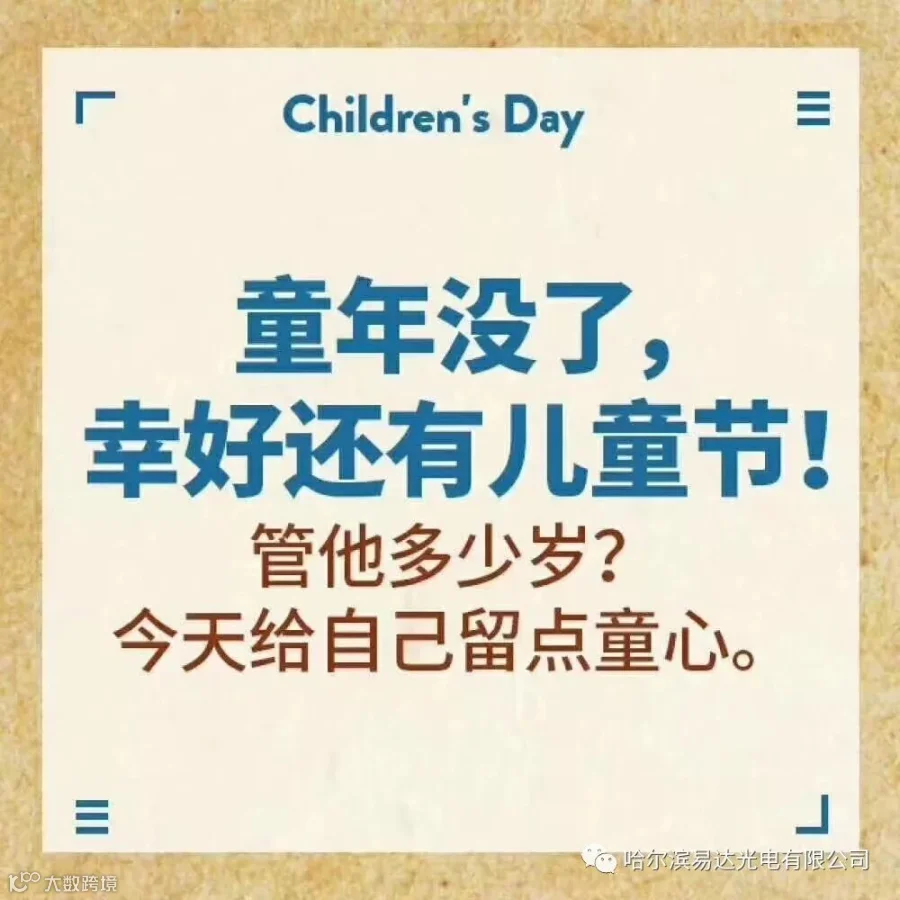 再累也别忘童趣,再忙也别忘了曾经的美好,童年是人生是最美好的天地,儿童节的到来,让我们暂时卸下重担,放下烦恼,随着孩子们一起欢乐起来吧。