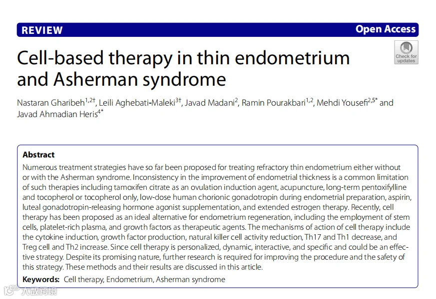 迄今为止,已经提出了许多治疗策略来治疗难治性薄子宫内膜,子宫内膜厚度改善的不一致性是此类治疗的常见限制,越来越多的研究探索了成体干细胞(包括间充质干细胞)治疗子宫内膜再生障碍的潜力手段。