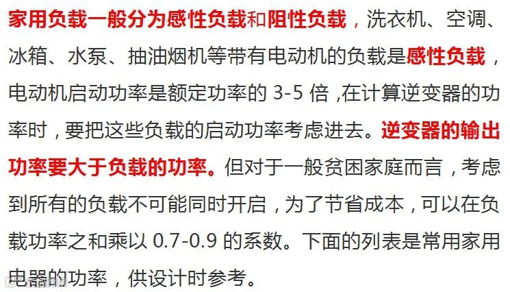 照明200瓦,冰箱50瓦,空调750W,电视机50瓦,洗衣机算300W,台式电脑200W,电饭锅1200W,电风扇100W,总计2850W,选用古瑞瓦特SPF 5000控制逆变一体机,输出功率为4.0KW。