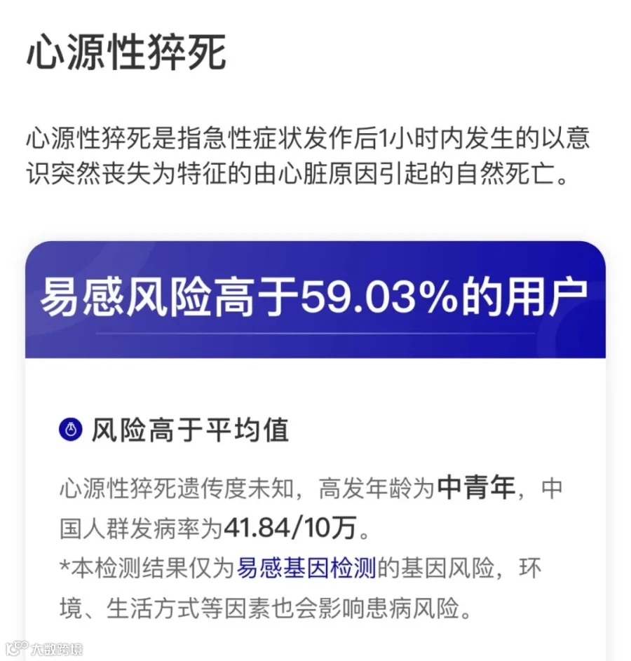 那么你更有必要进行一次深度检测,除了「心源性猝死」,「高血压」、「痛风」、「肿瘤」等也一样受基因影响,隐蔽性强、发病凶险,基因检测可以在症状出现前排查风险,预防疾病的突袭。
