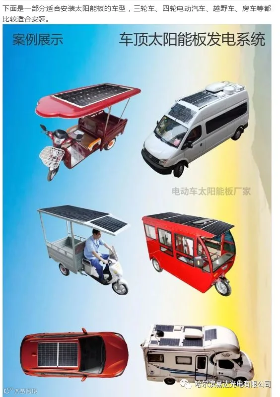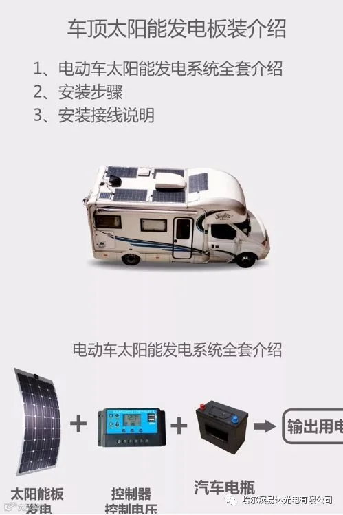 爱车要安装车顶太阳能发电板,需要知道两个数据:车顶尺寸和电瓶电压大小,知道这两个数据就可以定做太阳能板发电系统了。