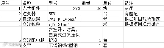 家用光伏系统设计,配置清单如下表: