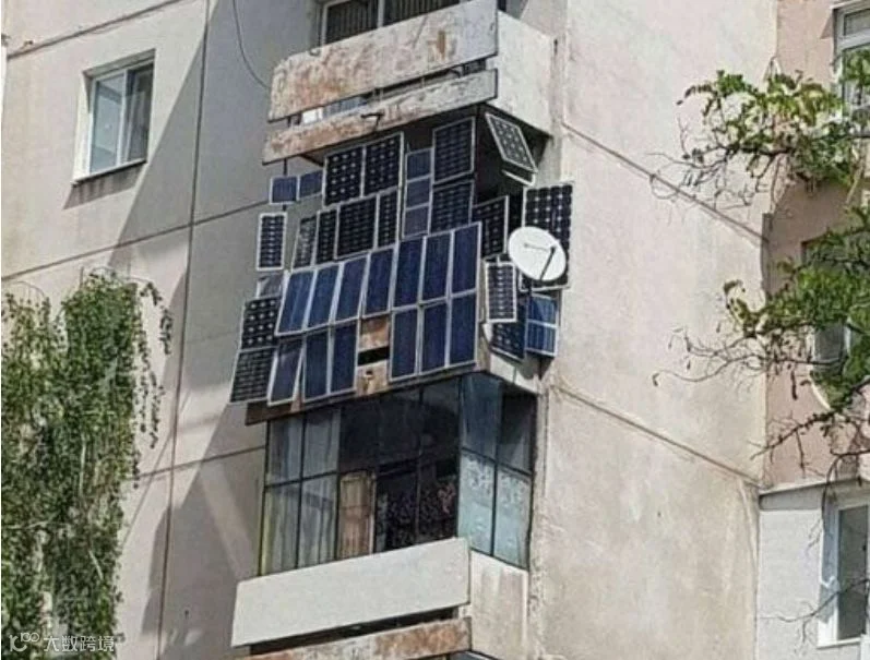 在楼房的墙体上安装光伏,估计这只是做个示范效果,也没指望它发电了。