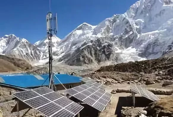雪山脚下的光伏电站。