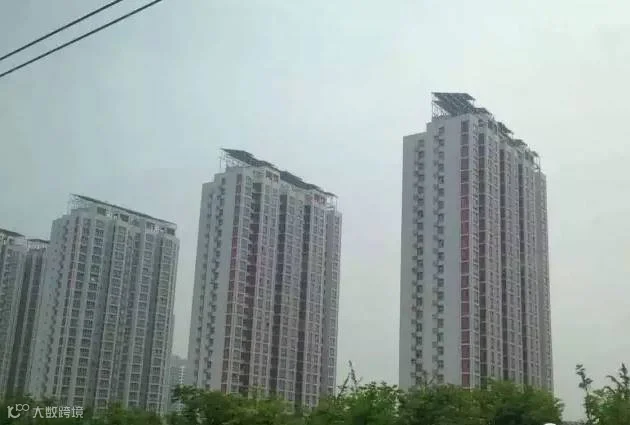 这是在山东的一个小区,有20几层吧,顶上是什么建筑物呢,看着像是光伏,但也有人说不是光伏,不管怎么样,希望在这么高的地方安装,应该要充分做好防风措施才行!
