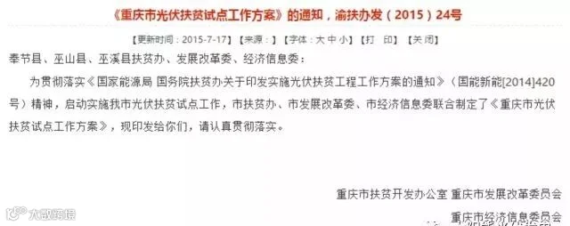 巫山、巫溪、奉节三个县试点建成的户用光伏,按照渝扶办发〔2015〕24号文件执行。