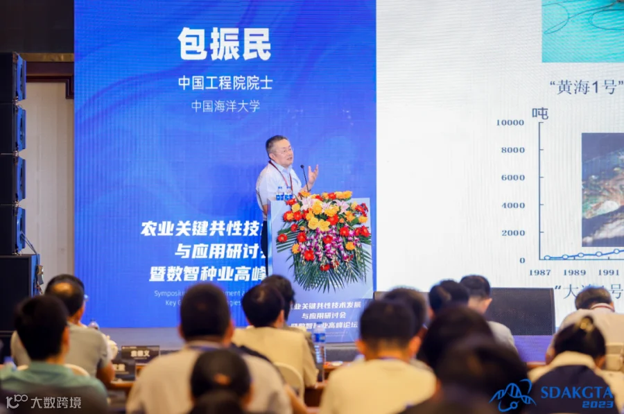 中国工程院院士包振民作题为《泛基因组IBD集群分型技术在虾贝育种中的应用》的报告