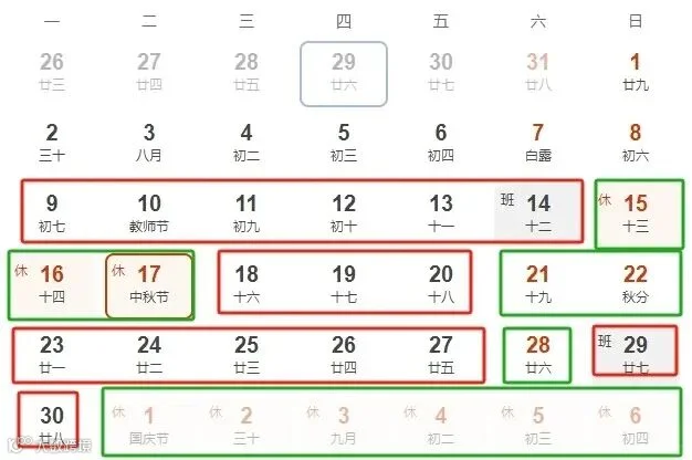 中秋国庆双节这么一碰撞,就得到了一个破碎的九月,和连续五周的调休👇👇👇