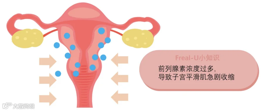 原发性痛经与自身前列腺水平相关。大姨妈登门造访时,人体会分泌前列腺素PGF2a,促进子宫平滑肌不断挤压收缩以排出脱落的子宫内膜。