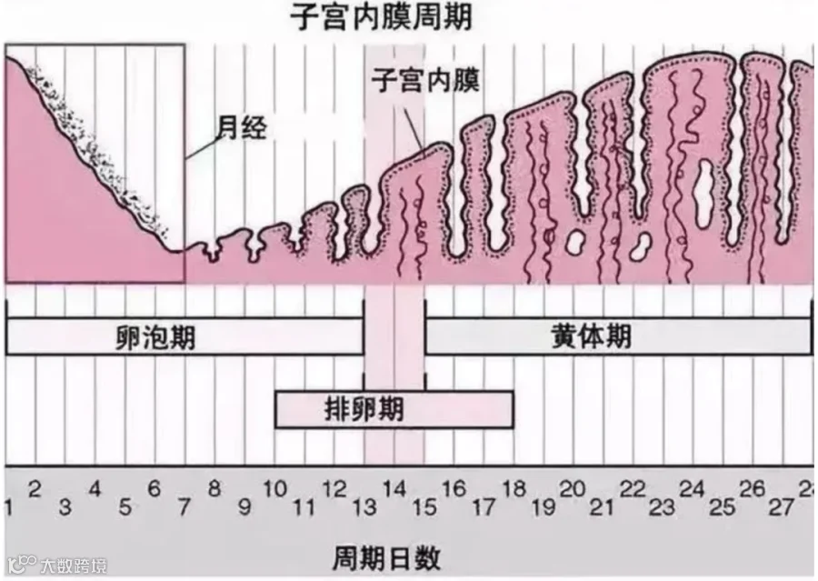 随着卵巢的变化,女性子宫内膜也会发生相应的周期性变化,排卵后,由于雌激素和孕激素的共同作用,子宫内膜发生水肿,腺体产生大量粘液和糖原,内膜厚度由1毫米增到6毫米;如果排卵后卵子没有受精,在排卵后第14天左右黄体萎缩,停止分泌雌激素和孕激素,此时子宫内膜中的血管收缩,内膜坏死而脱落,引起出血。