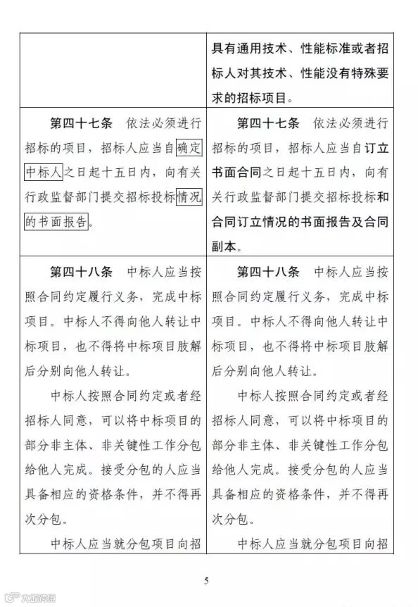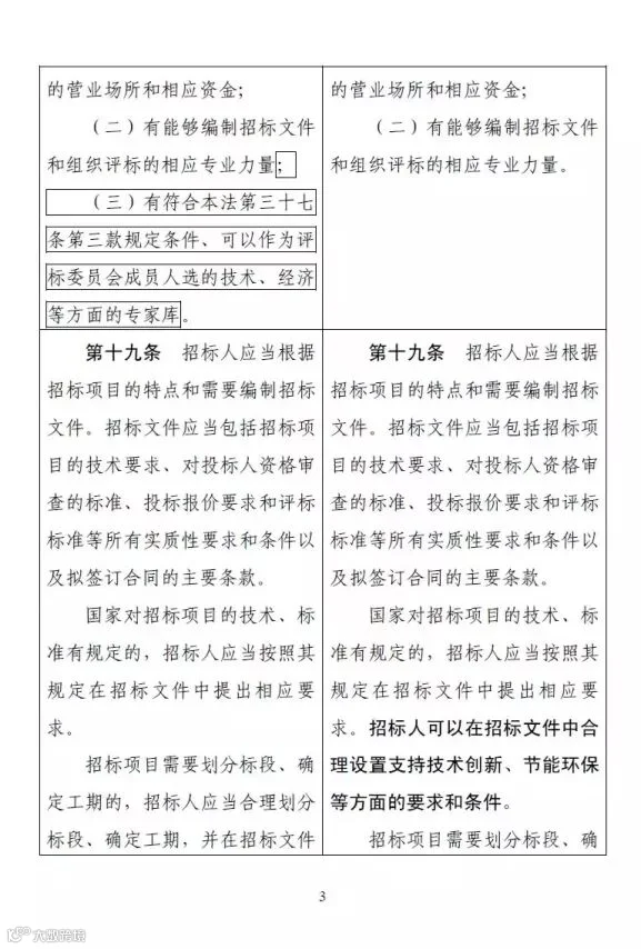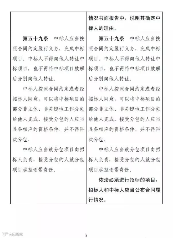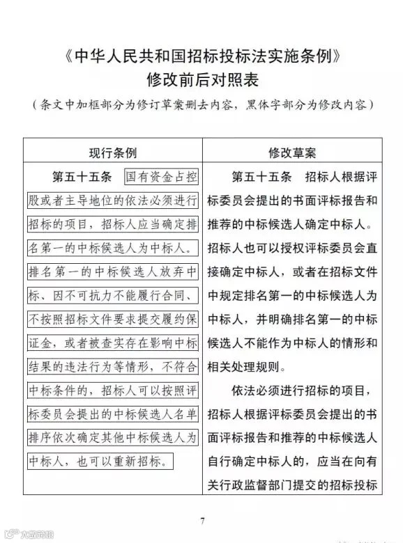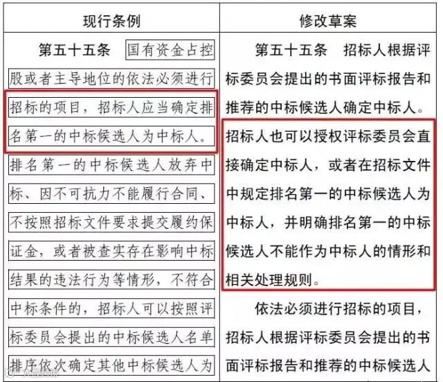 其中,最受大家关注的一点是:招标人可以直接确定中标人。该条修改前后对照如下: