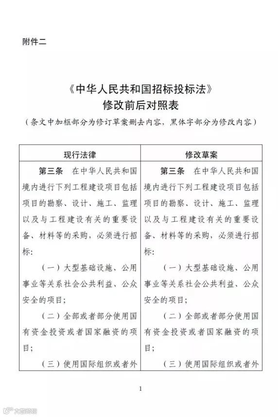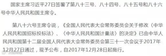 这意味着2017年9月20日改革委就修改《招标投标法》及《招标投标法实施条例》的征求意见稿,已经签署,2017年12月28日起正式施行。