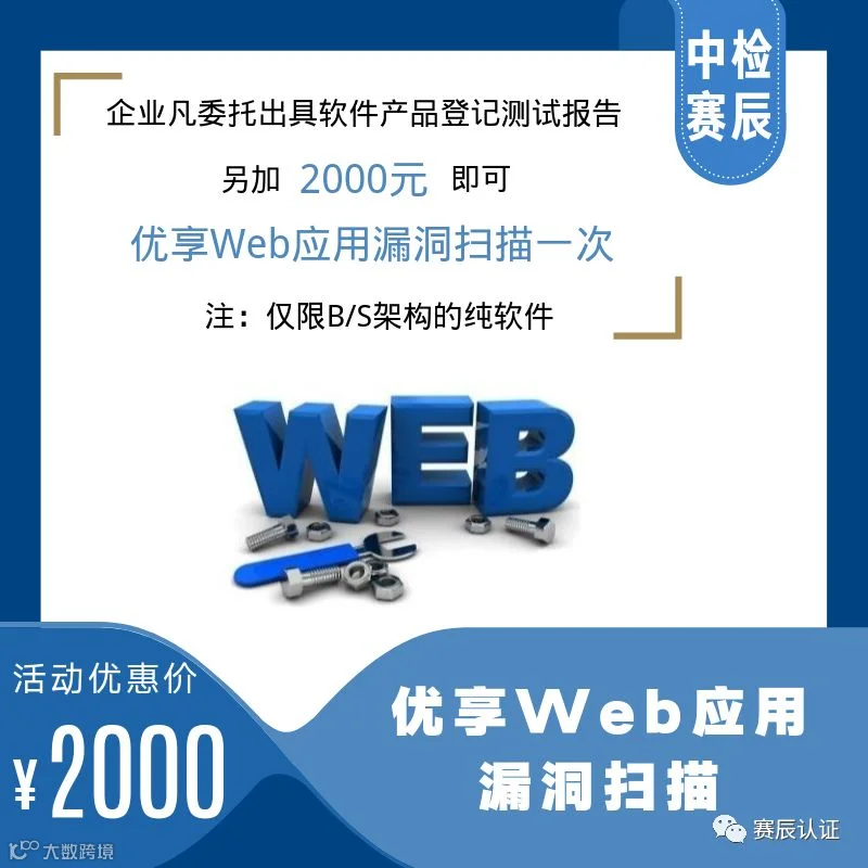 为回馈新老客户,即日起,企业凡通过我公司委托出具软件产品登记测试报告时,+2000元即可享受该软件Web应用漏洞扫描,及出具问题报告(市场参考价为8000元起)。