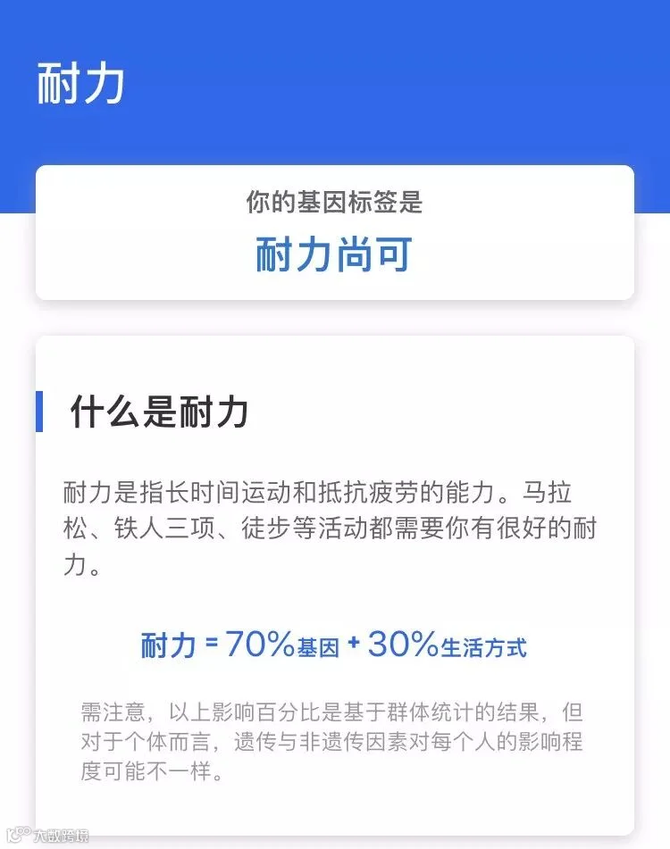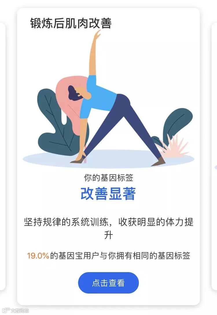 比如说,你的耐力的基因标签是「尚可」,但是爆发力的基因标签是「较弱」,那么教练可能会根据你的这一特点,来制定更符合你的健身计划。