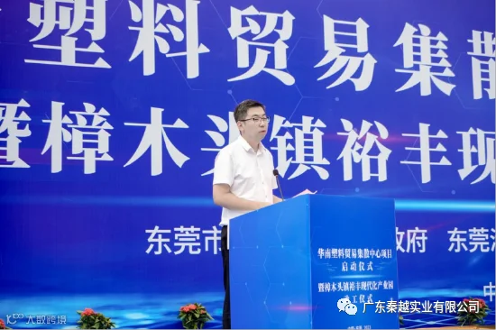樟木头镇党委副书记、镇长芦湛在致辞指出,华南塑料贸易集散中心项目不仅是樟木头镇引进国企共同开发现代化产业园开辟的一条新路,也是推动塑胶产业高质量发展的重要举措,更是东莞建设高能级大宗商品交易平台、助推生产性服务业向高端延伸的创新探索。今天,在市有关领导和镇党委、政府的见证下,港务集团、秦越实业与中化塑料已经签订3方战略,通过充分发挥港务集团全市最强物流国企的战略地位以及中化塑料、秦越实业的行业龙头牵引优势,联合打造华南塑料贸易集散中心,这也标志着樟木头塑胶产业进入了一个新的发展阶段,将努力推动塑胶产业向规模化、规范化、高端化升级发展,为全市生产服务业转型发展提供更多可借鉴的鲜活经验。