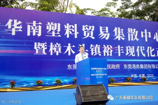 东莞港务集团党委副书记、总经理郭旭东致辞指出,华南塑胶贸易集散中心项目是东莞市首个港口与产业、港口与镇街合作共建的项目,意义重大。作为东莞市国有主要外贸综合服务企业,多年来港务集团持续提升港口开放平台能级,提出“海港+空港+商贸港”发展战略,实施服务全市制造业高质量发展“2+3+3”行动计划,加快落实“港产融合提升”计划。此次搭建华南塑料贸易集散平台,港务集团希望能进一步发挥港务集团的综合优势,带动期货交易所、大型生产商、 贸易商、终端消费企业、金融机构、运输企业、仓储企业等各方进一步聚集到樟木头镇来,一起构建合作共赢的发展新局面。