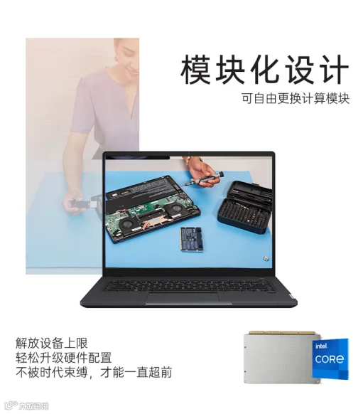 最引人注目的是欣达P14的模块化设计理念。它支持Intel NUC Element计算模块的灵活更换,用户可根据实际需求,轻松升级处理器、内存等核心组件,让笔记本随时保持与时代同步,它还可以定制开机LOGO、企业宣传定制、笔记本外观A面/C面logo定制,展现企业的特色和品牌形象。此外,支持外挂图形、图像专业卡的功能,最高可接入NVIDIA A8000 24G图形卡,为专业设计师、视频编辑师等用户群体提供了前所未有的创作空间,让灵感不受限制。
