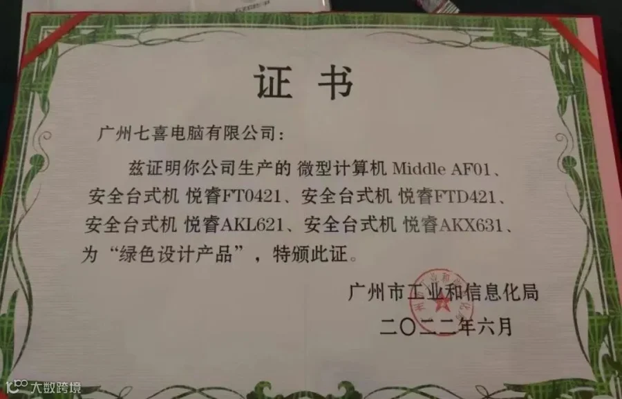 七喜信创系列电脑通过工信部评审获得绿色设计荣誉