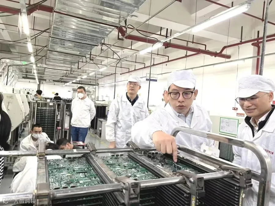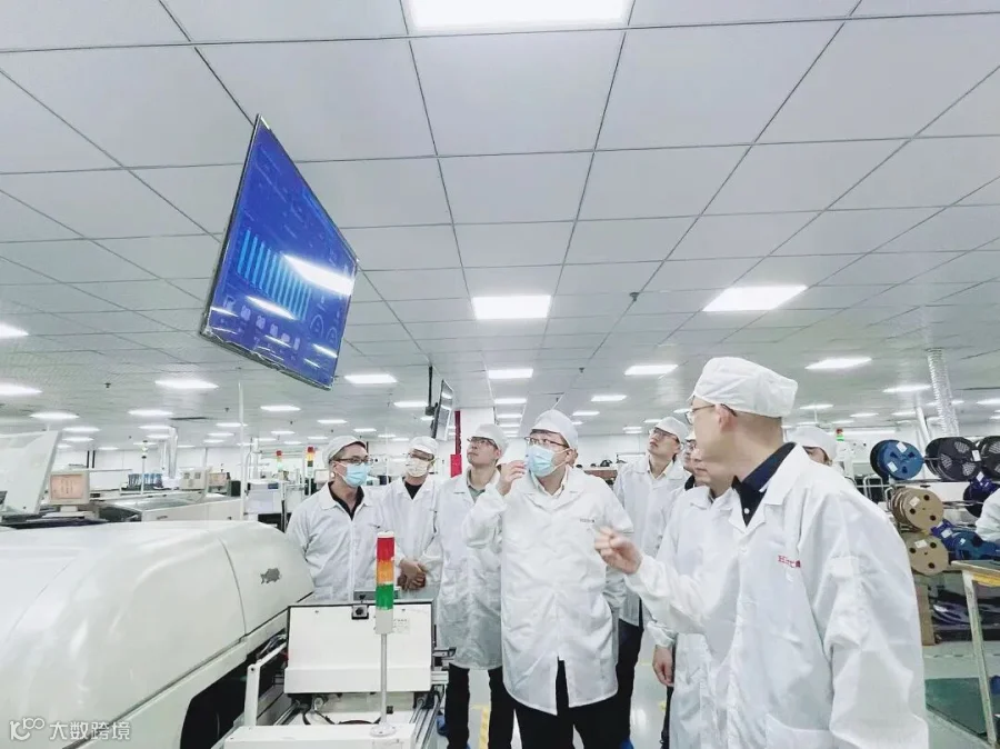 黎总一行参观了七喜电脑SMT全产业链智能生产车间,七喜电脑制造总经理刘志雄对生产工艺及近期排产情况进行了现场说明,详细介绍了智能系统主机板卡的生产、包装、仓储、出库等环节运作流程。随后,来到七喜电脑整机总装车间,陈总介绍整机可定制化的生产制作的流程。